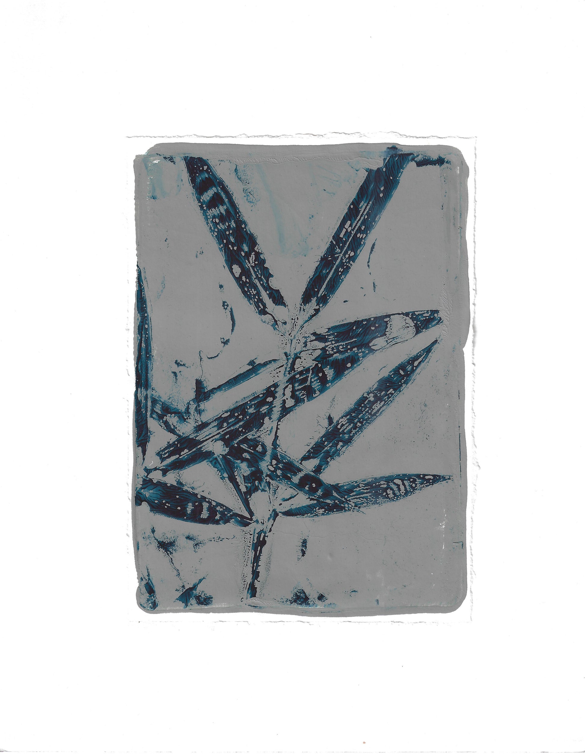 Original bamboo monoprint titled 'Echo of Still'. This 5x7 in print is matted in a 11x14 in mat archival mat. Each piece is hand-pulled using real bamboo leaves gathered from peaceful walks outside my studio. One-of-a-kind, ready to frame. Buy 2 small prints, get 10% off — perfect for mindful art collectors and nature lovers.
