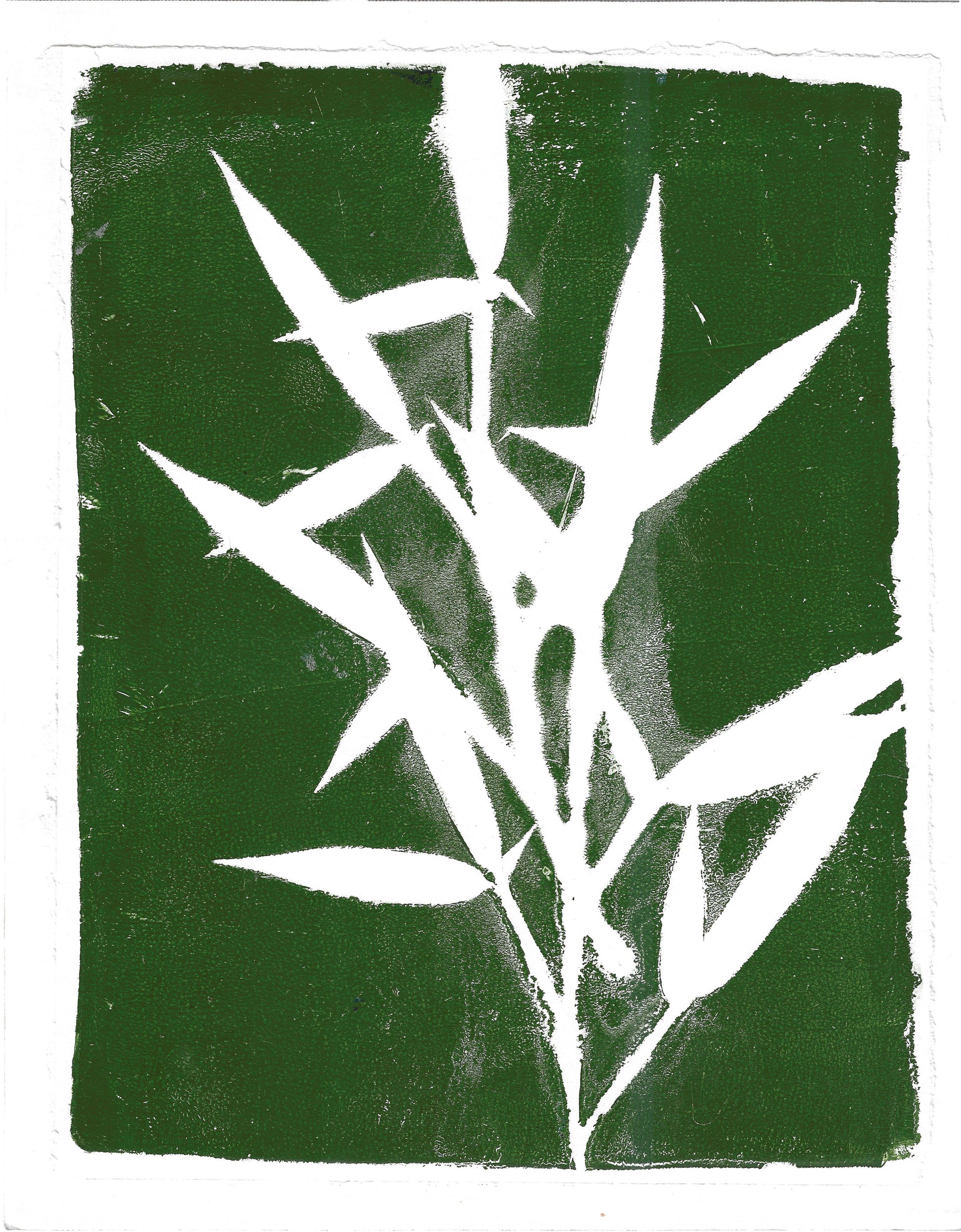 Original bamboo monoprint titled 'Edge of Stillness'. This 8x10 in print is matted in a 16x20 in mat archival mat. Each piece is hand-pulled using real bamboo leaves gathered from peaceful walks outside my studio. One-of-a-kind, ready to frame. Buy 2 large prints, get 10% off — perfect for mindful art collectors and nature lovers.
