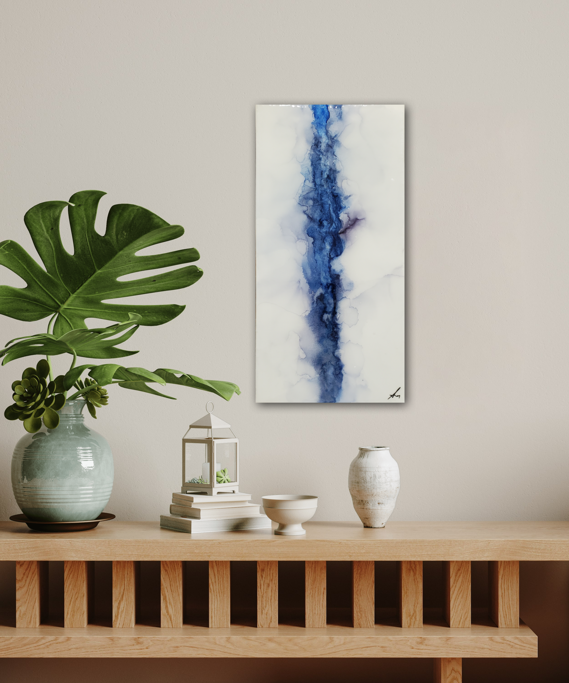 Finished with UV varnish protectant and resin, initialed on the front, signed and dated on the back, wired and ready to hang.