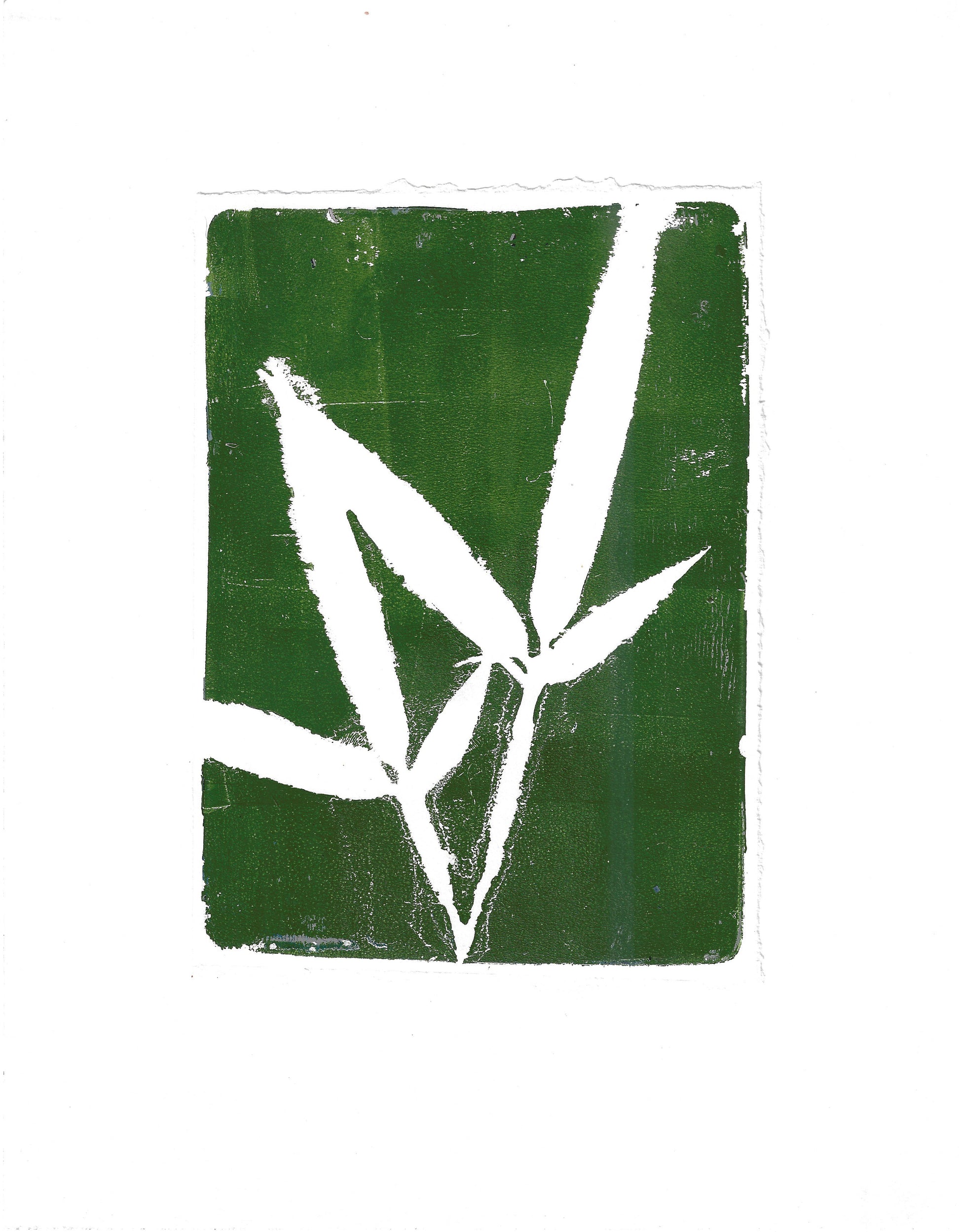 Original bamboo monoprint titled 'The Quiet Path'. This 5x7 in print is matted in a 11x14 in mat archival mat. Each piece is hand-pulled using real bamboo leaves gathered from peaceful walks outside my studio. One-of-a-kind, ready to frame. Buy 2 small prints, get 10% off — perfect for mindful art collectors and nature lovers.