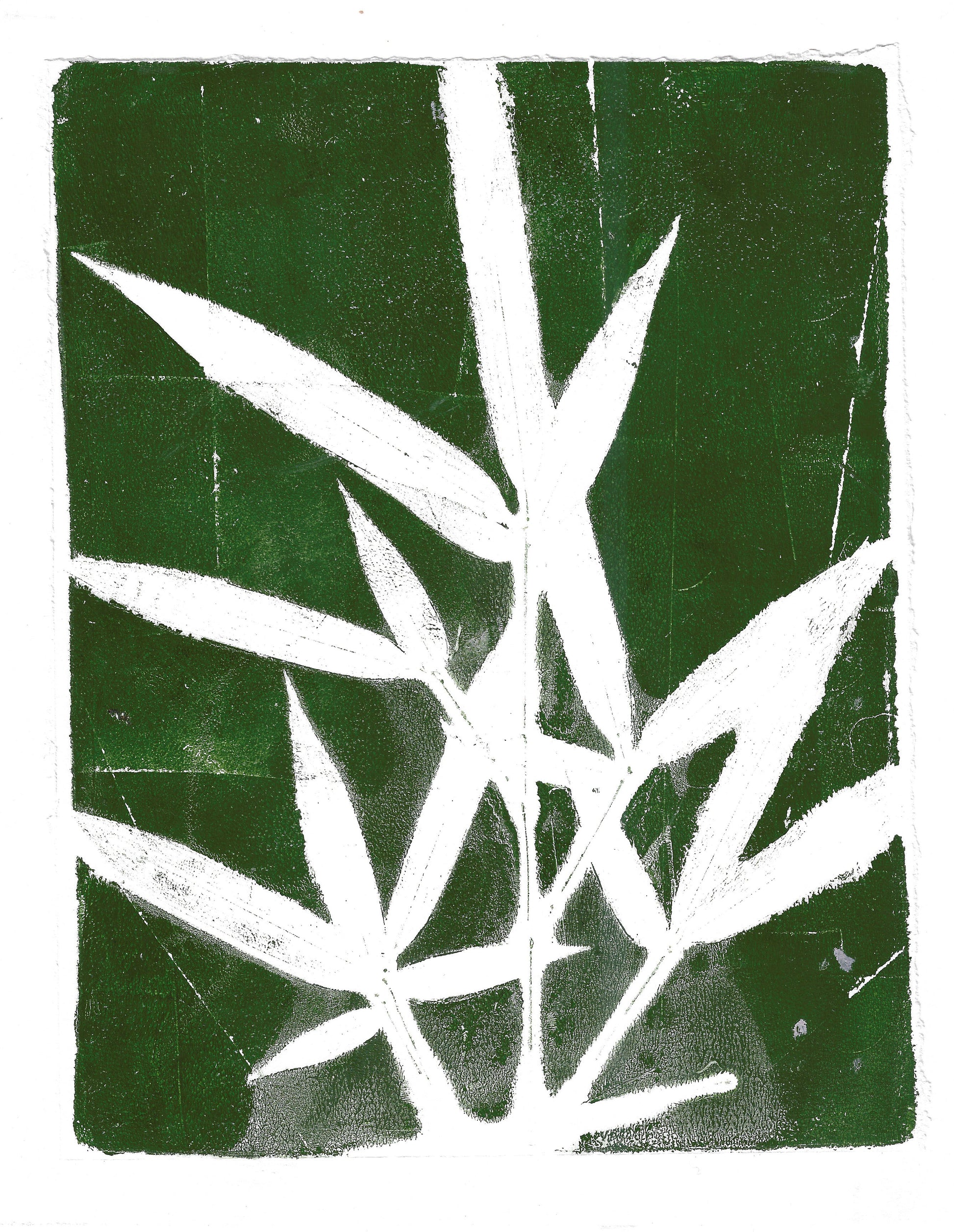 Original bamboo monoprint titled 'Unrushed'. This 8x10 in print is matted in a 16x20 in mat archival mat. Each piece is hand-pulled using real bamboo leaves gathered from peaceful walks outside my studio. One-of-a-kind, ready to frame. Buy 2 large prints, get 10% off — perfect for mindful art collectors and nature lovers.